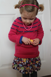 My second big project of the Tour was to spin this Extra Fine Merino from Hedgehog Fibres. The colour way is mostly grey with little flashes of vibrant colours; mostly pink and green/yellow with some little hints of blue. The fibre really is super soft; not at all compressed or fulled by the dyeing process, and practically spins itself.